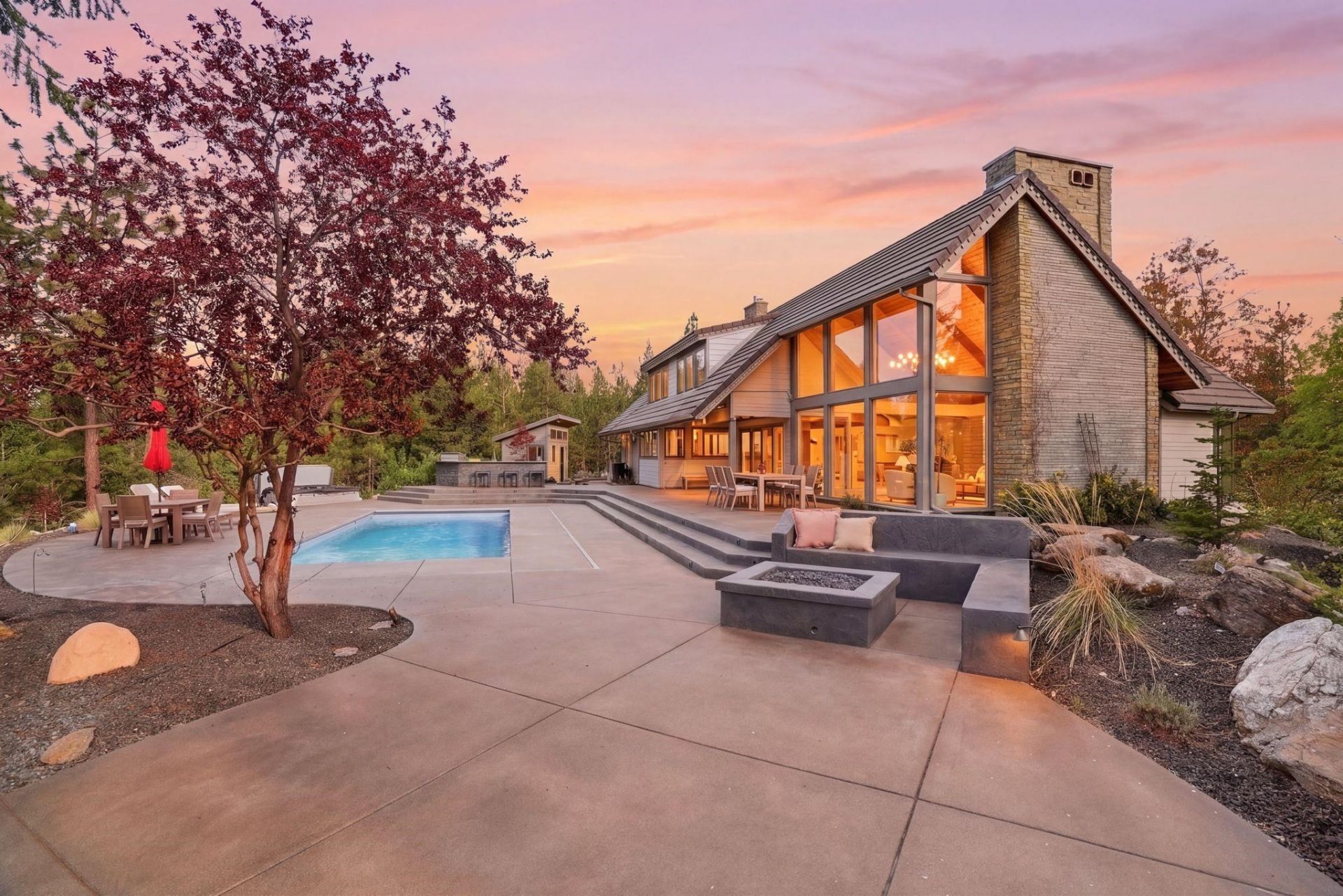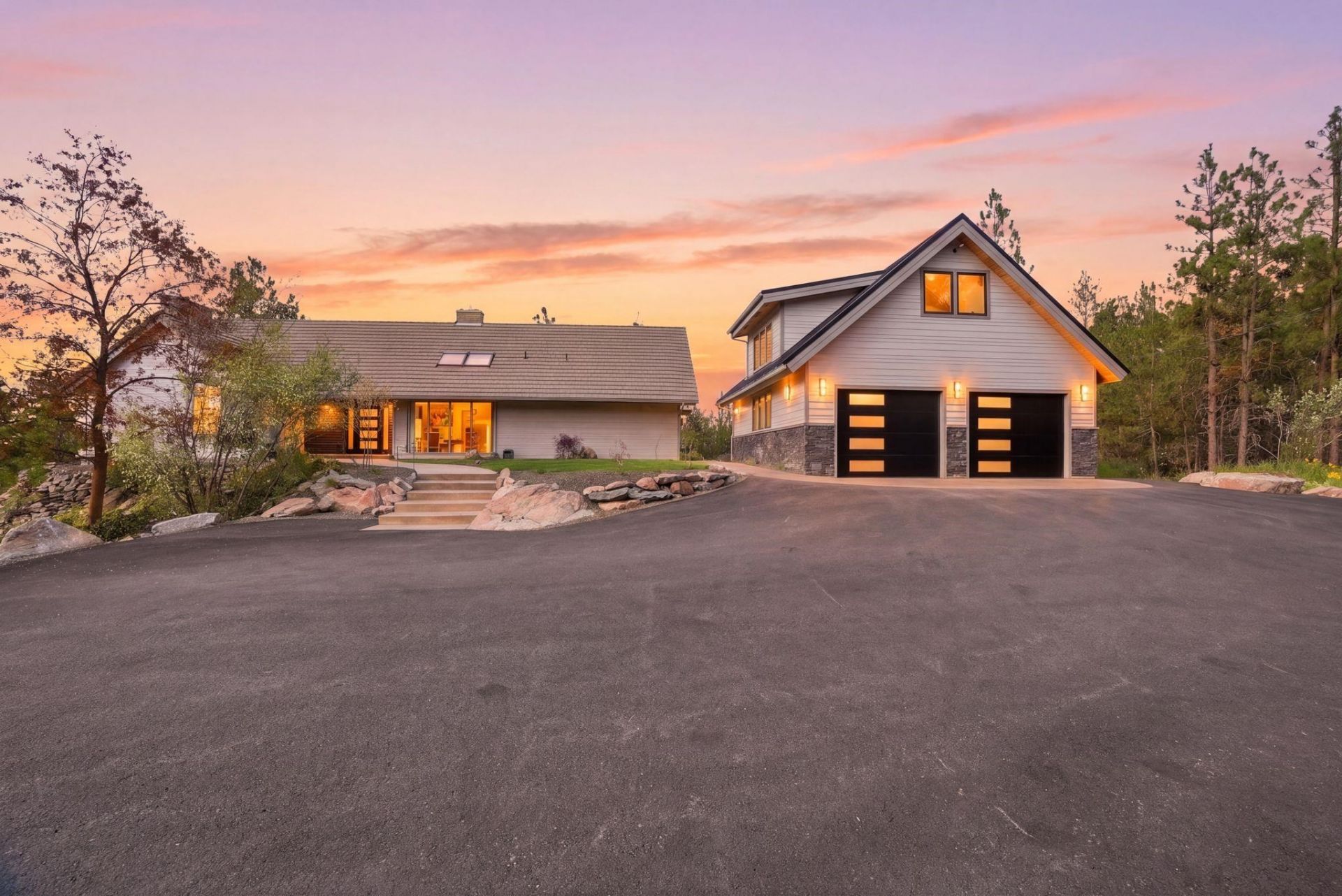Beautifully updated Don Neraas custom home on 3.85 private acres with sweeping views of downtown and unforgettable sunsets. With 4,086 sq ft of refined living, this 4 bedroom and 4 bath home is designed for effortless main floor living with a luxurious primary ensuite complete with built-in closets and a steam shower. A spacious great room, office or formal dining space, laundry, and a custom kitchen makes it ideal for entertaining. Upstairs includes two bedrooms, a loft, and wet bar, while the lower level offers a rec room, additional bedroom, and bath?perfect for guests. Step outside to your own resort-style retreat with a 2019 in-ground salt water pool, outdoor kitchen, fire pit, hot tub, putting green, and bath house. The newly built (2025) oversized heated shop includes EV hookup and a studio apartment above, plumbed and ready for your finishing touches. A rare blend of privacy, luxury, and lifestyle.